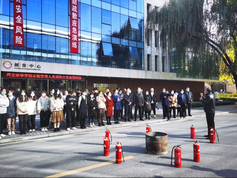 为增强师生消防安全意识,提升实验室管理人员消防安全技能,增强对突发事件消防安全应急处置能力,预防公共安全事故的发生,11月12日,学校教务管理中心与后勤服务中心在创客中心大楼联合举办了消防应急疏散演练。学校教务管理中心副主任、实验实训中心主任刘斌,后勤服务中心副主任、党委保卫部副部长赵维仪,各二级学院实验中心主任、实验管理人员、创客中心功能区全体师生参加了演练。