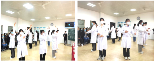 活动现场,护理学1905班学生代表表演中医健康拍打操。