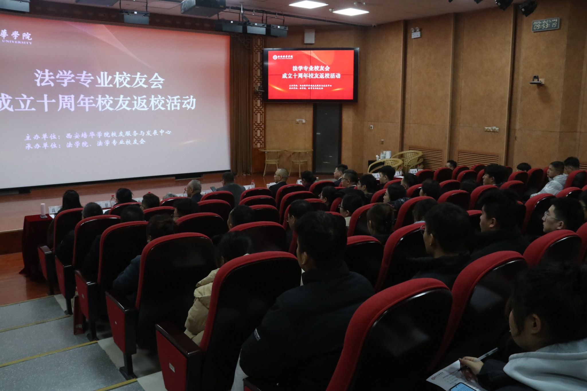 为了凝聚校友力量、共促法学教育发展,2025年12月27日,西安培华学院法学专业校友会成立十周年校友返校活动在汇知楼国学大讲堂顺利举行。特邀嘉宾、法学专业校友及师生齐聚校园,共话法学教育发展与校友成长之路。此次活动由校友服务与发展中心主办,法学院、法学专业校友会承办。