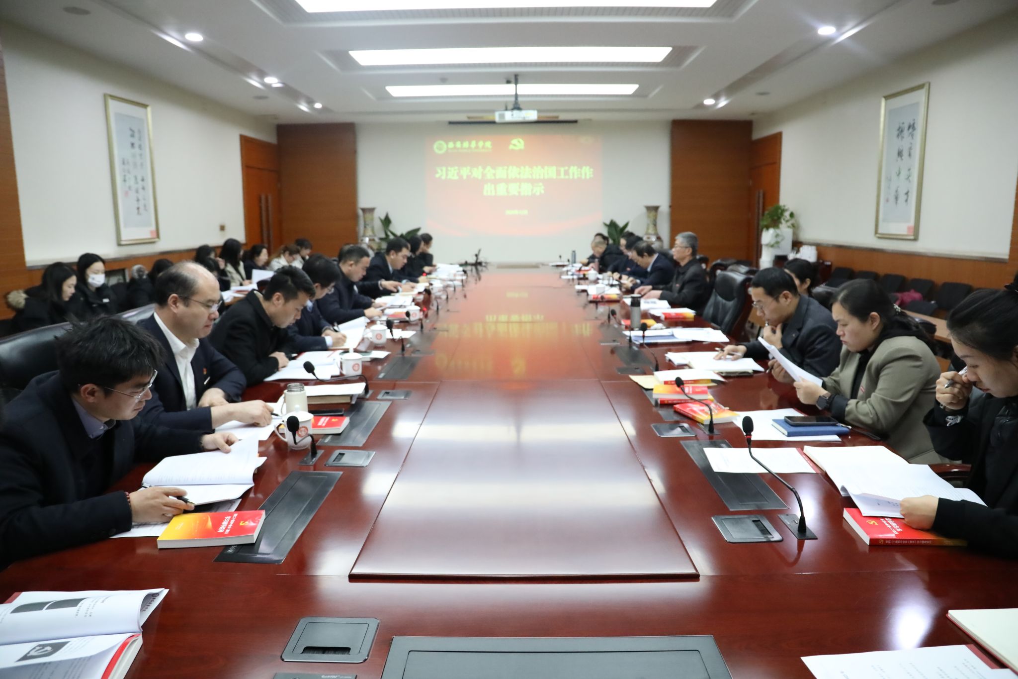 刘锋同志带头领学了《中共中央关于制定国民经济和社会发展第十五个五年规划的建议》以及习近平总书记就该《建议》所作的说明,引导与会人员深刻把握国家未来五年的发展方向、主要目标和战略任务。纪委书记陈玲同志领学了《中国共产党党徽党旗条例》精神,强调了维护党徽党旗尊严的重要性。法学院党总支书记韩斌同志领学了习近平总书记对全面依法治国工作作出的重要指示,结合专业特色阐述了法治建设的核心要义。会计与金融学院党委书记刘斌同志领学了习近平总书记在中央经济工作会议上的重要讲话精神以及中共陕西省委十四届九次全会精神,分析了当前经济形势与地方发展要求。