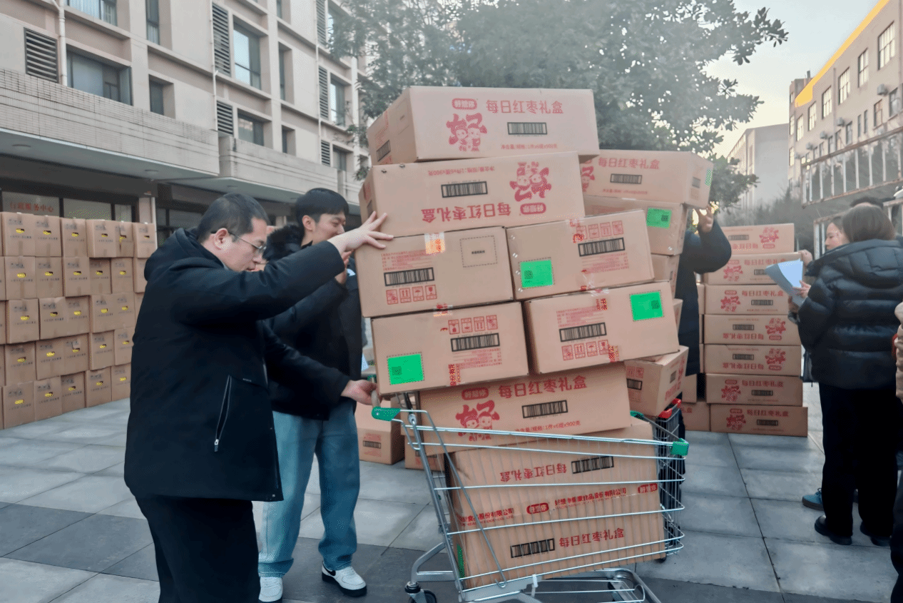 此次慰问品精心挑选了兼具营养与健康的新年礼包,包括“蛋先森”叶黄素可生食鸡蛋和“好想你”每日红枣各一箱,寓意新的一年生活美满、身体安康。各基层分会信息员与教职工代表有序领取,学生志愿者积极配合协助,共计1600余份慰问品顺利发放至教职工手中,现场气氛温馨融洽。