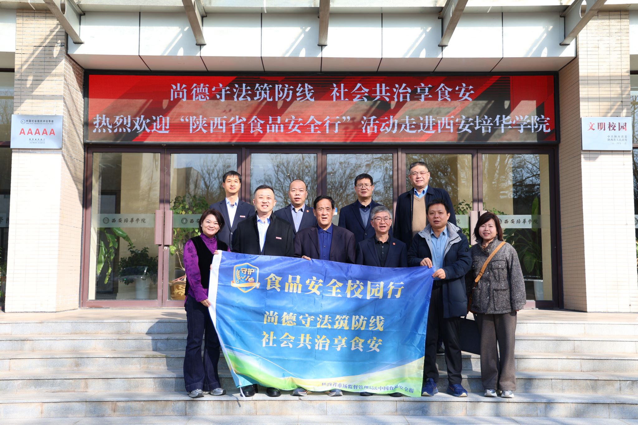 为深入贯彻食品安全督导工作,1月8日,由陕西省市场监督管理局、中国食品安全报陕西记者站共同主办的2025年“陕西省食品安全校园行”系列活动走进培华,本次活动以“尚德守法筑防线 社会共治享食安”为主题,致力于构建政府监管、媒体监督、学校负责、师生参与的校园食品安全社会共治新格局。