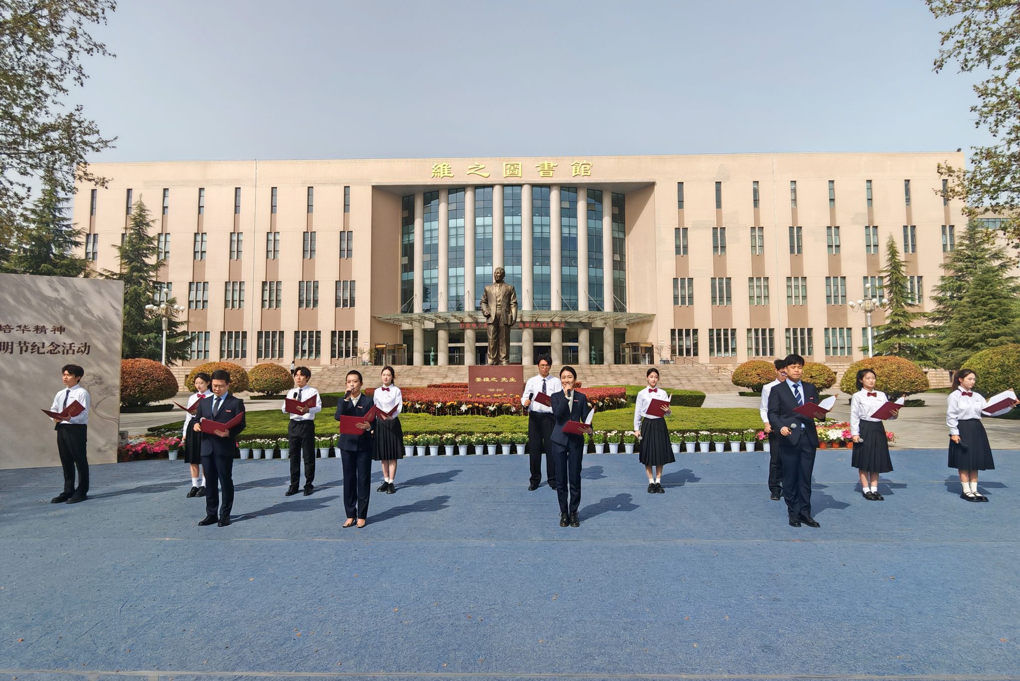 纪念活动在庄重而温暖的氛围中圆满结束。随后,师生代表们手持鲜花,逐一敬献于老校长铜像前,表达无尽思念与崇高敬意。