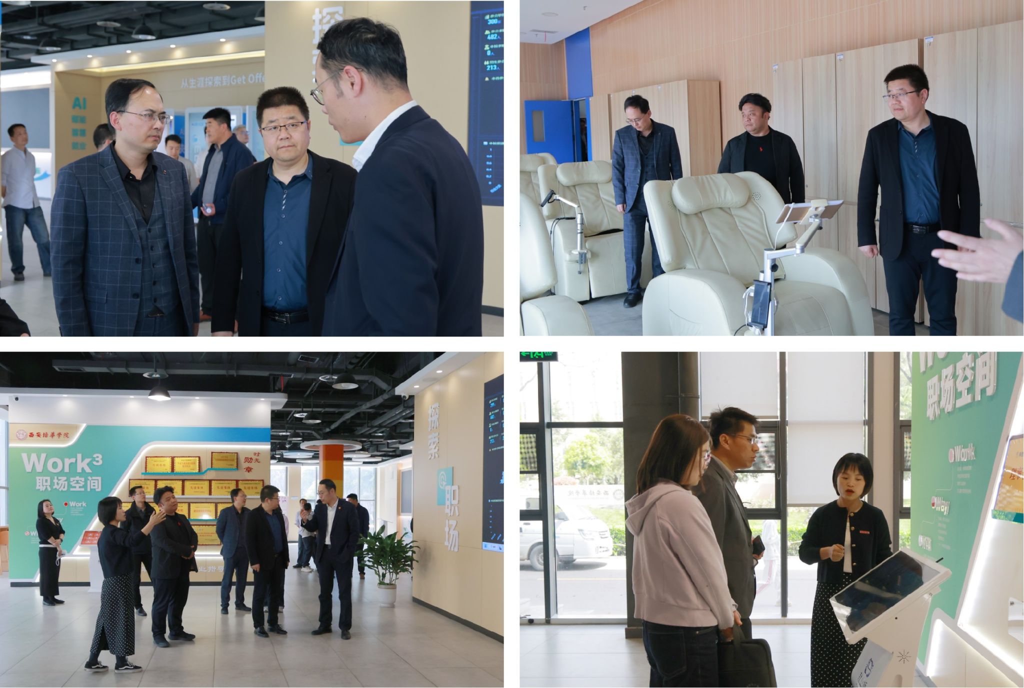 来宾一行依次参观了培华恒友楼“一站式”学生服务大厅、陕西省心理健康教育与咨询示范中心、职业生涯与就业指导智慧功能体验馆、笃行学生社区10号楼、学生社区多功能室、“雏鹰”工作室等,深入了解我校的学生工作开展情况,并共同探讨新时代学生工作的创新发展理念与举措。
