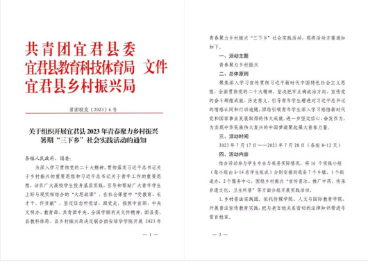 2023年,学校积极助力乡村振兴,充分发挥校地联动实践育人的重要作用,在铜川团市委、宜君县委县政府、乡村振兴局、团县委等有关部门的大力支持下,围绕理论宣讲、法律科普、科技兴农、乡村健康、爱心支教、产业调研等实践方向,成立了西安培华学院青春聚力乡村振兴暑期“三下乡”宜君专项实践团,下设16支实践服务队,实践足迹遍布宜君县的9个乡镇、22个村。在蓝天白云和绿水青山中,也留下了许多培华青年难忘的青春印迹。