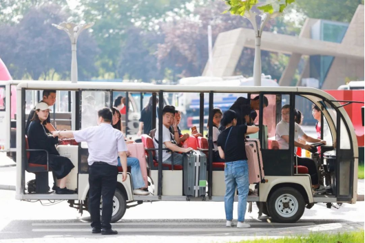 红马甲、小推车、迎新牌...,,,志愿者的身影忙碌穿梭在校园各个地方,全校上下齐动员,热情周到地迎接新同学的到来。