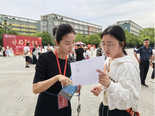 老师们、志愿者们在各学院教学楼等区域引导萌新们有序完成各项入学手续的办理。