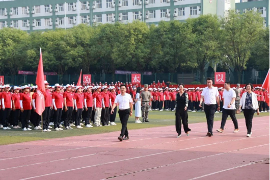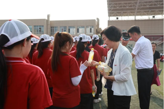 副校长刘越莲,副校长、党委副书记姚文静等校领导走进军训连队,为新生送去关怀。
