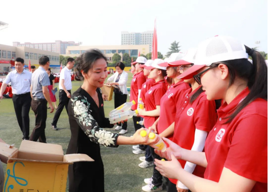 军训期间,辅导员全程守护在新生的身旁,了解学生的军训动态,关心学生身心健康,学生潜能发展中心志愿者走进各连队,通过互动游戏,为新生解压。后勤服务中心、学生服务中心在军训期间,也为新生送去绿豆汤、柠檬水等消暑饮品。