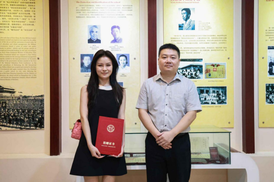 党委宣传部部长柳雨向刘老孙女刘苓枝颁发捐赠证书,柳部长表示刘老、雷老曾经在培华发展历史上留下了浓墨重彩的一笔,在培华建校95周年之际,他号召同学们要刻苦学习,将培华老一辈创业者的精神和永不磨灭的培华情结一代代传承下去。