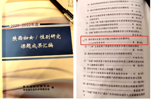 同时,学校女子学院课题《陕西省妇女参与乡村振兴的路径及机制研究——以汉阴陕西县为例》入选陕西妇女/性别研究课题成果汇编。