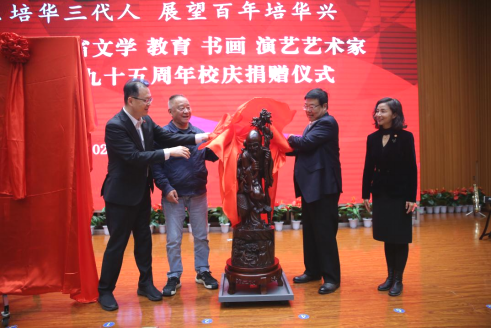捐赠仪式上,来自文艺界的知名人士分别向培华九十五周年校庆捐赠了自己的艺术作品,并为九十五周年校庆献上自己的精彩演出。