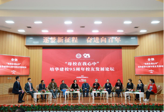 10月26日下午,“母校在我心中”培华建校95周年校友发展论坛在学校明德楼报告厅举行。老校友代表:原西安市市容委办公室主任、1955届校友王健鹏,1955届校友蔡培华 ;西安培华女子大学教职工代表:原西安培华女子大学党支部书记、党办校办主任、原培华职业中专校长雷福云,原西安培华女子大学教职工晁翠花;西安培华女子大学校友代表:1990届英语专业校友唐从容、1994届服装设计专业校友席伟、2001届护理专业校友陈惜、2002届英语专业校友蒙江红;西安培华学院校友代表:2011届播音与主持艺术专业校友张太岭、2012届国际经济与贸易专业校友李永超、2013届法学专业校友李涵宇、2013届汉语言文学专业校友杜连升、2021届汉语言文学专业校友邢嘉瑜;西安培华学院理事长姜波,原西安培华女子大学教职工张运良,党委宣传部部长、校友服务与发展中心主任柳雨及学生代表200余人齐聚培华,共叙佳话。本次论坛由传媒学院教师尚勇主持。