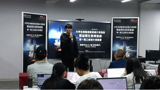 开营仪式上,教务管理中心副主任、实验实训中心主任刘斌发表讲话。他表示,学校举办大学生创新创业训练计划项目和第一届工业设计训练营,旨在切实提高大学生的创新意识、创新精神和创新能力,通过跨专业、跨学院的形式组成团队,向着跨专业合作与跨领域创新方向不断突破,并持续创造价值。最后,他鼓励同学们积极学习技能、认真实践,关注并参与高水平学科竞赛和创新创业活动。