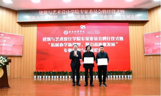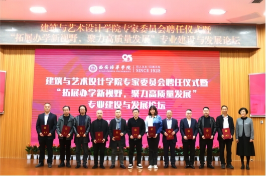 为庆祝西安培华学院建校95周年,助力学校及学院高质量发展,10月28日,由学校建筑与艺术设计学院主办的“专家委员会聘任仪式暨‘拓展办学新视野,聚力高质量发展’专业建设与发展论坛”在西安培华学院明德楼报告厅举行。西安培华学院理事长姜波,学术委员会主席、副校长刘越莲,专家委员会全体委员,企业与社会人士,学校各职能部门领导、学院领导、各专业负责人及学生代表共200余人参加。通过论坛交流分享建筑类、艺术类学科教学及发展的前沿信息,深入研究学科融合交叉和数字化转型下的教育教学工作,更好助力落实立德树人,服务区域创新发展,实现高质量发展。聘任仪式由学院党委书记兼行政副院长王飞主持,论坛由专家委员会秘书长杨志博士主持。