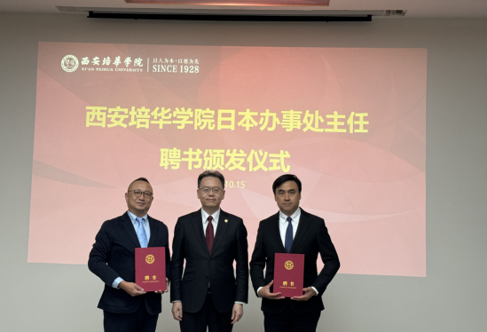 会议决定成立西安培华学院日本办事处,特聘日本银座环球/东京芝浦外国语学院林继夫理事长为西安培华学院日本办事处主任,中国区代表苑来先生为西安培华学院日本办事处副主任。未来,培华日本办事处将聚焦国际化战略和优质资源,创新与变革发展模式,“多措并举”努力提升学生的升学和就业质量,加强“走出去”和“引进来”,推动国际化师资队伍建设。加强与日本各级各类学校和企业的合作,设计出更具性价比的国际化实习实训项目、学历提升直通车项目、交流交换项目、资格证书学习和培训项目。打造培华特色、形成范式,创立新的国际合作“朋友圈”。