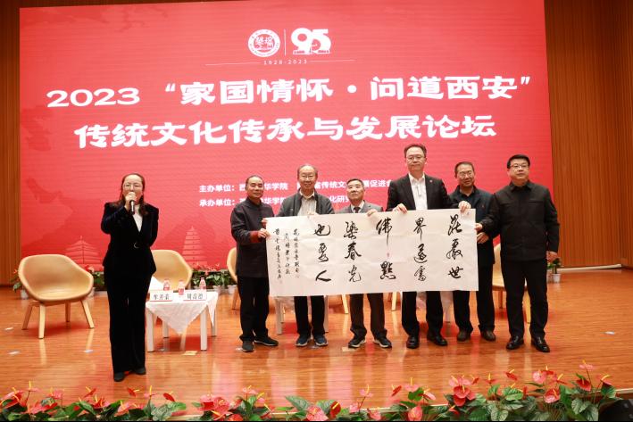 主旨论坛发言嘉宾集体向主办方西安培华学院赠送书法作品