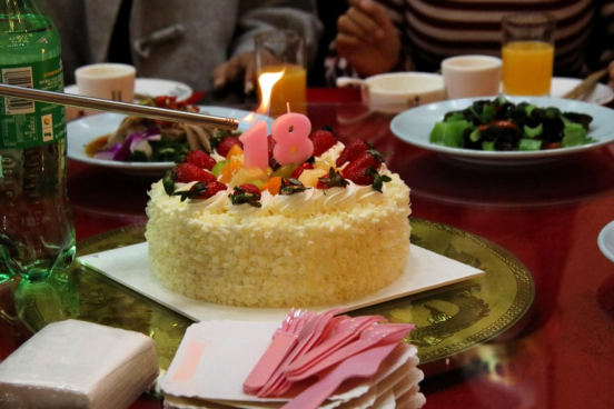 分坐各桌的校领导们为寿星老师们点燃生日蜡烛,送上美好的愿望。蛋糕上“18”字样的生日蜡烛代表对每一位教职工的祝福:永远年轻、快乐!