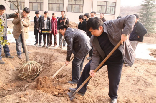2011年3月14日,师生在育英楼后侧栽下树苗