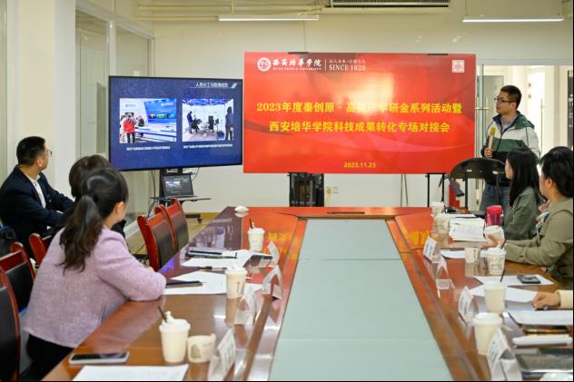 11月23日,西安高新区科技创新局、西安培华学院、西安技术经理人协会、西安弘理专利事务所联合在学校创客中心举办高新区秦创原·产学研金系列活动暨西安培华学院科技成果转化专场对接会。高新区科技创新局、西安科技大市场、西安市技术经理人协会等政府相关部门领导,学校科研管理中心副主任莫姣姣、医学院副院长王巧峰、会计与金融学院副院长丁阳、智能科学与信息工程学院院长助理毛莉君,西安融通军民创新发展中心等10家企业及学校部分教师代表参加。