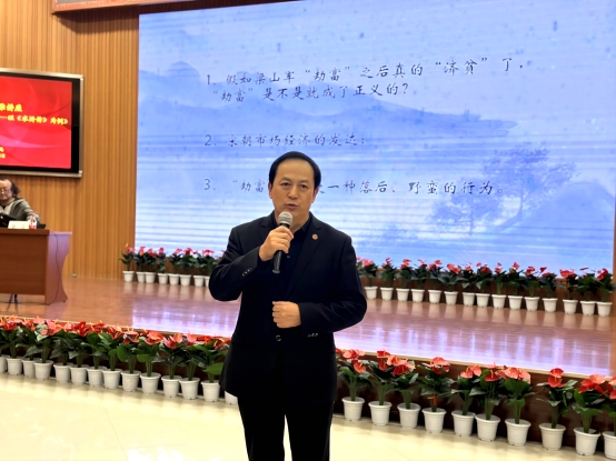 为进一步丰富学生理论知识,拓宽学生视野,充分发挥“博雅讲座”在培养学生人文素质教育方面的作用,11月24日下午,学校邀请作家狄马为我校师生进行了以《我们现在应该怎样读经典——以《水浒传》为例》为主题的博雅讲座活动。讲座由常务副校长胡俊生主持。