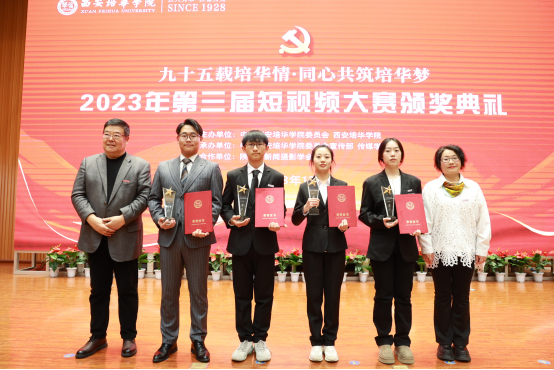马克思主义学院院长闫团结为二等奖获奖作品开奖,精神传承赛道《弘毅》、培华印象赛道《我好像发现了小薇的秘密》、乡村振兴赛道《山水小镇红色山交》、科普文化赛道《尽头是消亡》获得大赛二等奖。