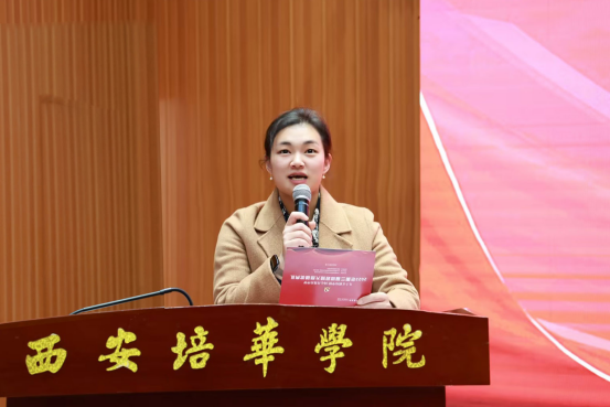 在颁奖典礼环节,副校长、党委副书记姚文静宣读《中共西安培华学院委员会关于表彰2023年“九十五载培华情 同心共筑培华梦”第三届短视频大赛获奖作品的通报》。
