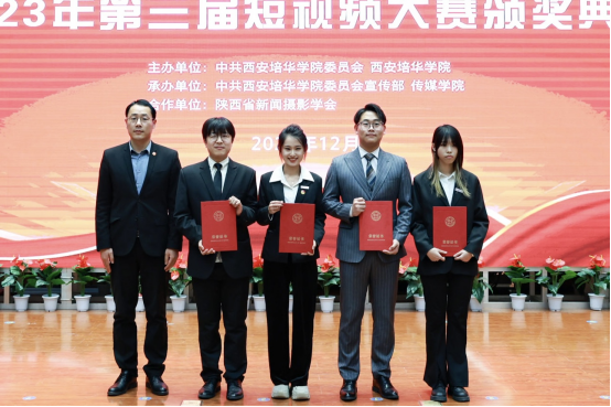 校团委书记杨媛为三等奖获奖作品开奖,精神传承赛道《当红星亮起》、培华印象赛道《因热爱而在》、乡村振兴赛道《核桃边的天》、科普文化赛道《古都遗产》获得大赛三等奖。