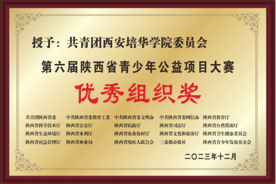 近日,由团省委、省委教育工委等联合举办的“第六届陕西省青少年公益项目大赛”中,学校推荐的项目《青春“健”长》《青“救”绸缪》《聚爱三秦,“救”在身边》分别斩获金奖2个、银奖1个,学校荣获大赛优秀组织奖。
