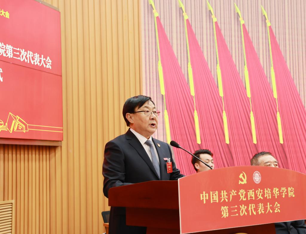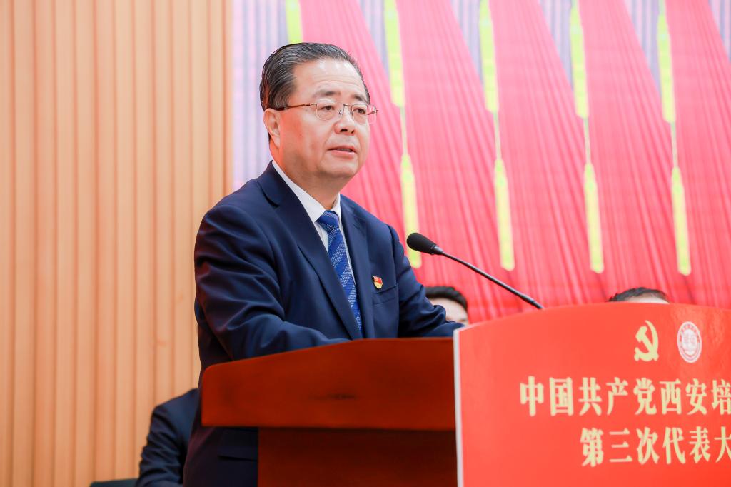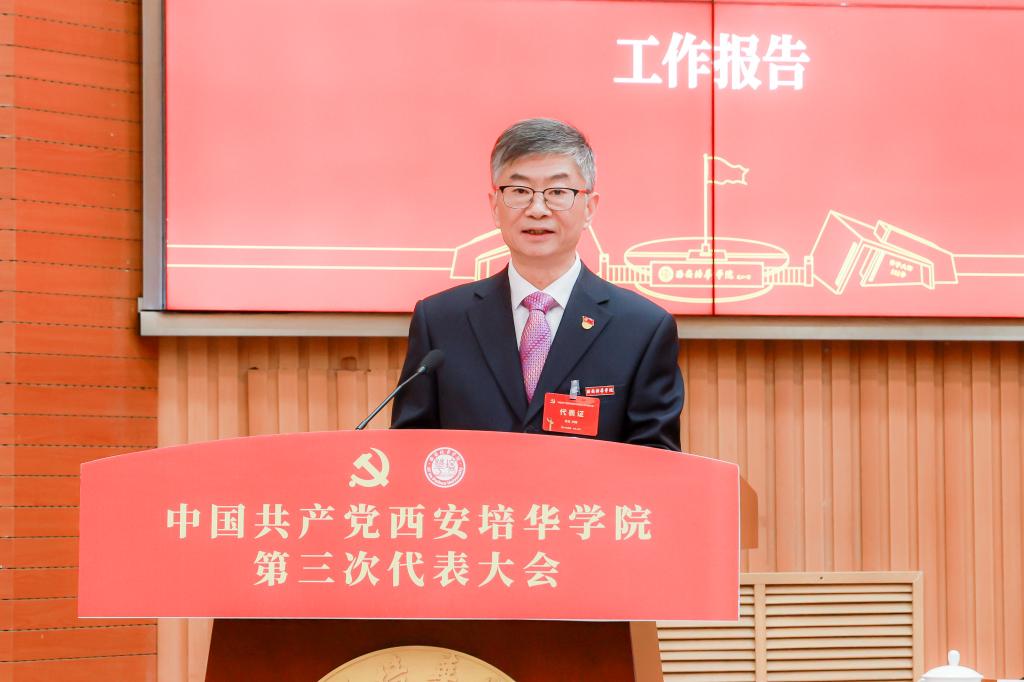 中国共产党西安培华学院第三次代表大会是在我国开启全面建设社会主义现代化国家新征程、向着第二个百年奋斗目标进军的重要时刻,在全省深入贯彻省十四次党代会精神、奋力谱写中国式现代化陕西新篇章的重要节点,在培华庆祝建校95周年、以本科教育教学审核评估全力推进高水平应用型民办大学建设的关键阶段,召开的一次十分重要的大会。大会的主题是:高举中国特色社会主义伟大旗帜,以习近平新时代中国特色社会主义思想为指导,深入学习贯彻党的二十大精神和习近平总书记关于教育的重要论述、六次来陕考察重要讲话重要指示,全面贯彻党的教育方针,全面落实立德树人根本任务,团结带领全校党员干部和广大师生,筑梦新征程、奋进向百年,为创建特色鲜明的高水平应用型民办大学而努力奋斗。