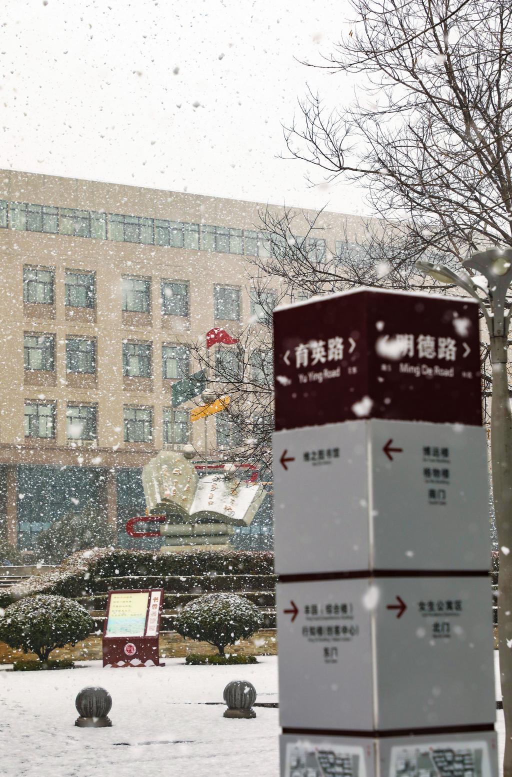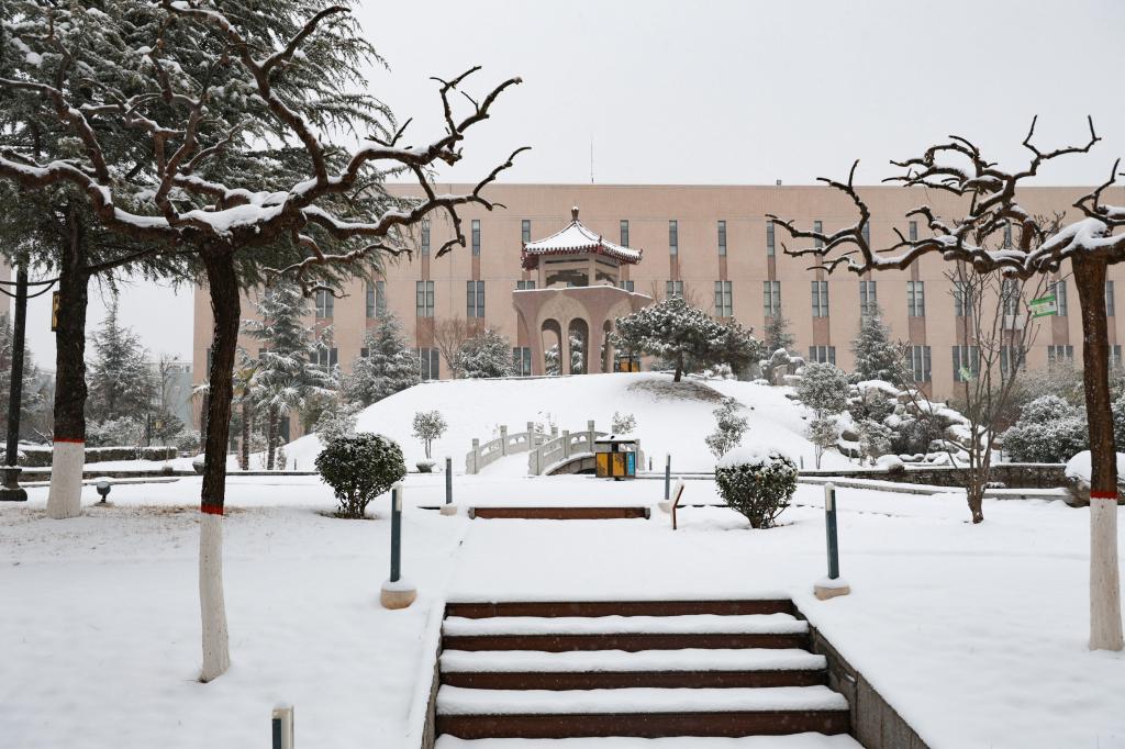 忽如一夜春风来,千树万树梨花开。白雪皑皑的校园,轻拥一份春日的静谧。