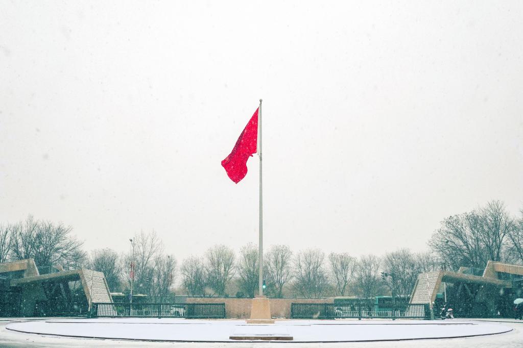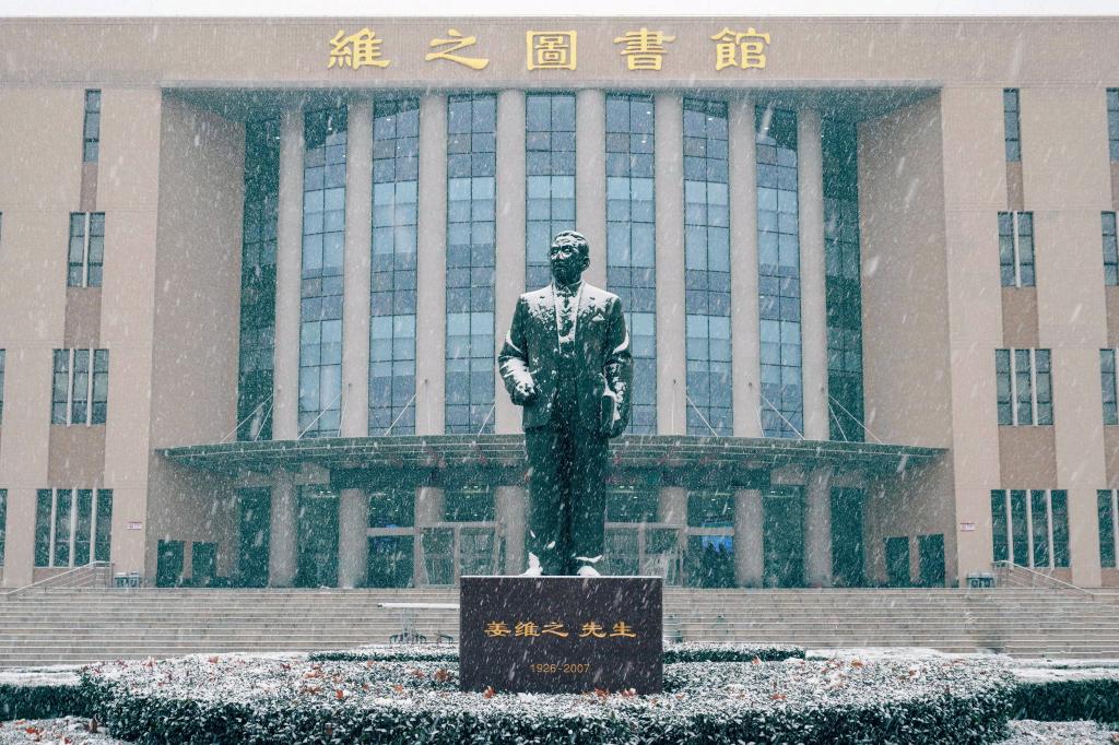白雪为底,层林尽染,漫步在银装素裹的校园里,坐过的亭子,路过的雕塑,心里有数不尽的浪漫故事。