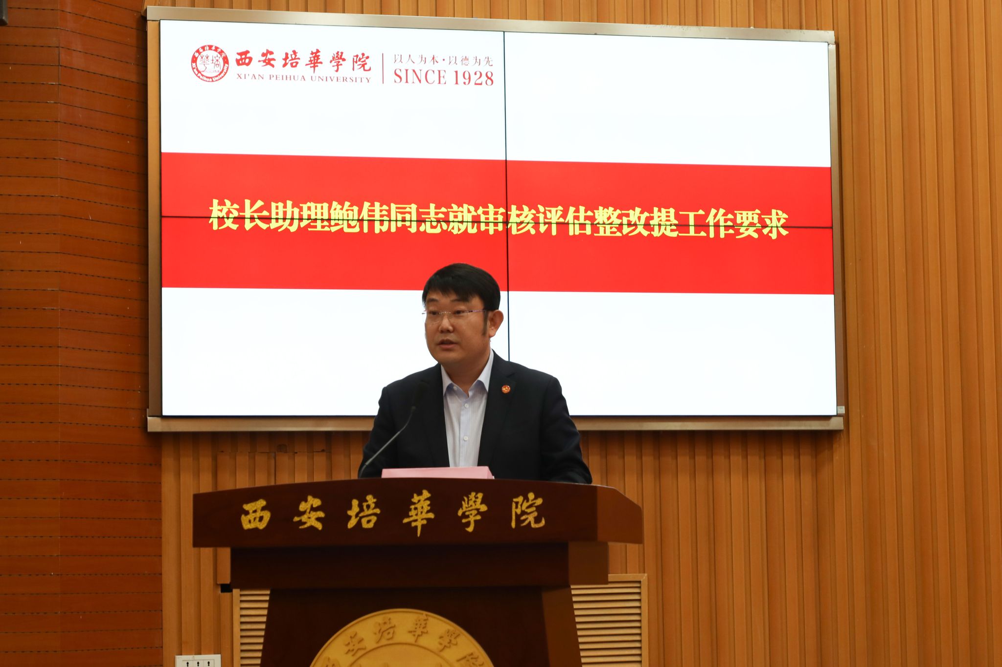 校长助理鲍伟代表学校就审核评估整改工作提出三点要求:一是提高站位,深刻领会评估整改的重大意义;二是担当作为,各司其职打好评估整改大会战;三是科学组织,精准施策抓落实。他要求,全体干部教师要以审核评估整改为契机,以评促建、以评促改、以评促管、以评促强,坚持评估整改和2024年度目标任务一张蓝图、同步推进。