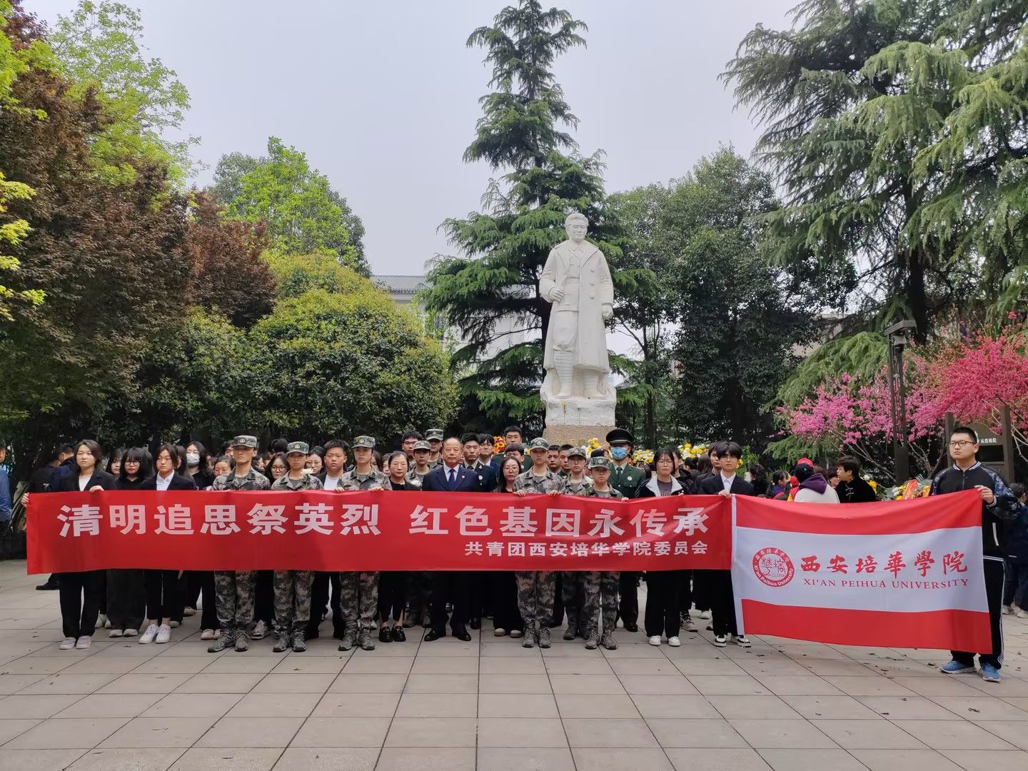 4月4日,西安各界人士齐聚西安革命公园刘志丹烈士雕像广场,举行“清明追思祭英烈 红色基因永传承”活动。西安培华学院副校长罗新远、陕西省红色文化研究院副院长潘迎丽等师生代表参加了纪念活动。