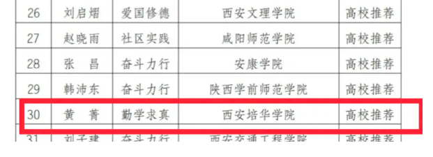 为深入贯彻落实习近平总书记关于青年工作的重要思想,动员引领广大团员青年为强国建设、民族复兴伟业挺膺担当,按照共青团中央、全国学联相关要求,共青团陕西省委、陕西省学生联合会开展了2023-2024年度“陕西省大学生自强之星”寻访活动。经个人申报、二级学院团委资格审查、学校(地市)联评推荐、省级评选等程序,学校会计与金融学院黄菁同学(勤学求真)、人文与国际教育学院高正扬同学(奋斗力行)、智能科学与工程学院吴雨恒同学(社区实践)荣获“2023-2024年度“陕西省大学生自强之星”称号,其中黄菁同学还入选“2023-2024年度“中国大学生自强之星”拟推荐人选名单。