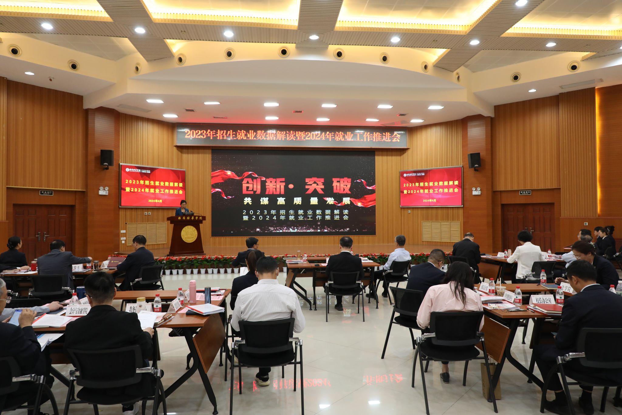 4月23日下午,学校召开2023年招生就业数据解读暨2024年就业工作推进会,会议以“创新·突破 共谋高质量发展”为主题,以数据为核心,从招生、就业和“招培就”三方面联动,深刻剖析挖掘,着眼学校高质量发展,精准部署当下招生就业工作,推动学校改革发展。全体校领导,各职能部门主要负责人,二级学院院长(常务副院长)、党委书记、教学副院长等领导干部参加。会议由党委副书记、副校长姚文静主持。