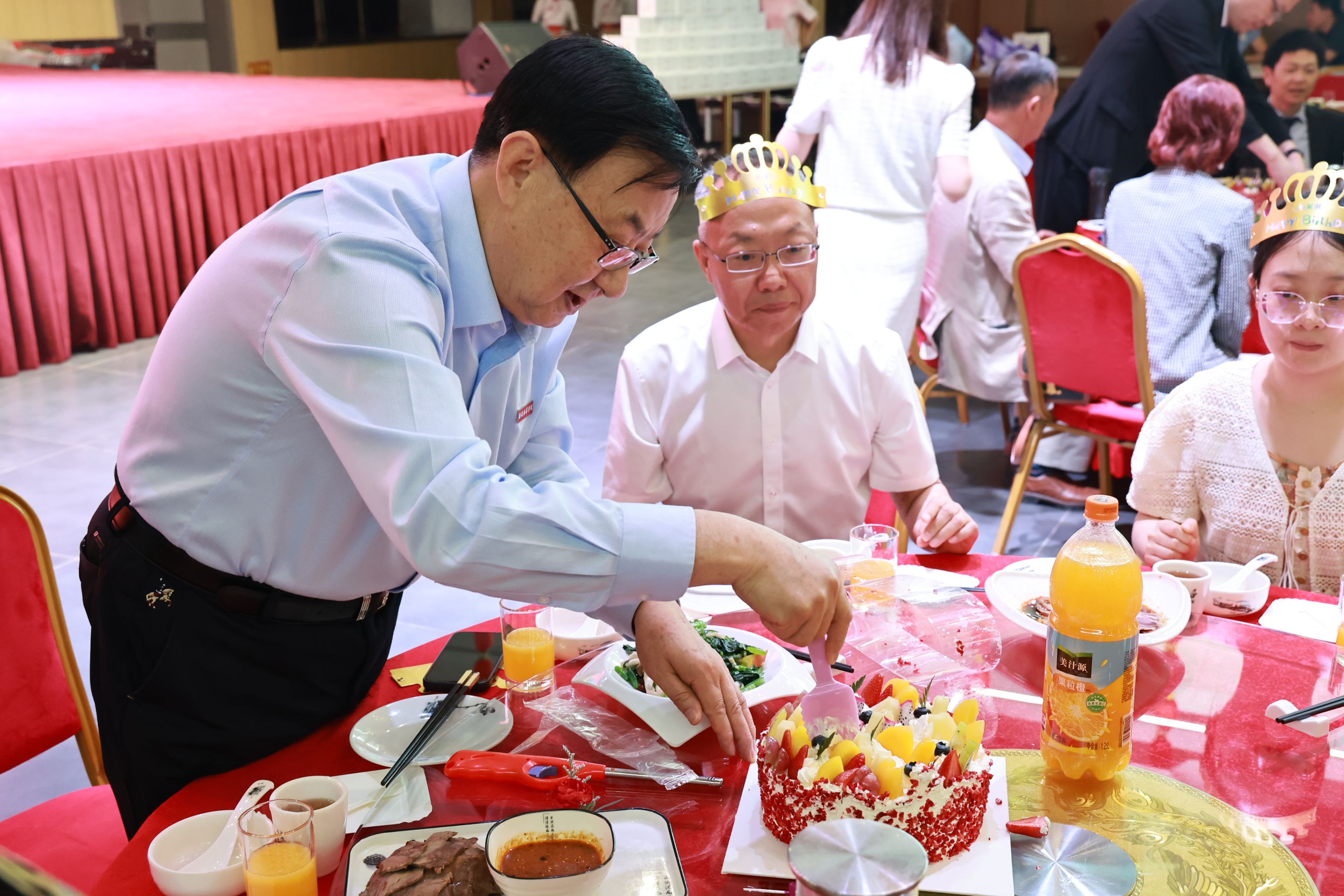 生日会伊始,姜波理事长代表学校为各位过生日的老师们送上真挚的生日祝福。他讲到:本学期已接近尾声,我校各项工作都在有条不紊的开展,也取得了显著的成绩,希望各位老师能享受今天美好的生日宴,感谢各位老师辛勤付出,学校也将继续努力为广大教职工营造更好的工作和成长环境。