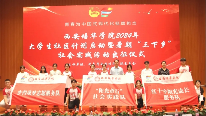 据悉,西安培华学院2024年暑期“三下乡”社会实践,以“青春为中国式现代化挺膺担当”为主题,聚焦学习习近平新时代中国特色社会主义思想和党的二十大精神,认真学习贯彻习近平总书记关于青年工作的重要思想和来陕考察重要讲话重要指示,内容涵盖学习宣传习近平新时代中国特色社会主义思想、爱国主义教育、中华文化传承、促进乡村振兴、服务基层群众、民族团结实践、生态环境保护、爱校护校实践、专业实践等多方面,校院联动组建300余支社会实践团队,其中立项校级重点团队100支。