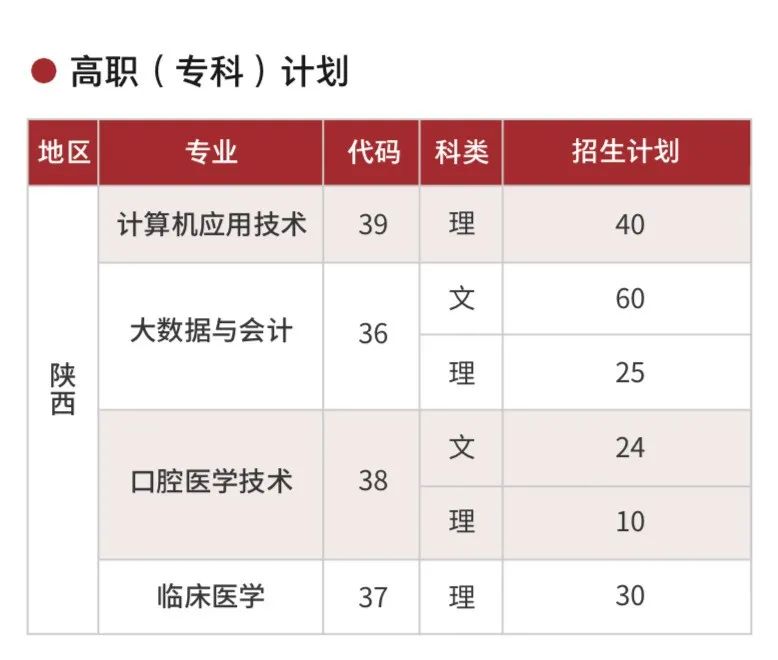 学校在陕具体招生计划如下