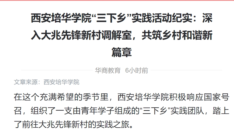 在这个充满希望的季节里,西安培华学院积极响应国家号召,组织了一支由青年学子组成的“三下乡”实践团队,踏上了前往西安市长安区大兆先锋新村的实践之旅。