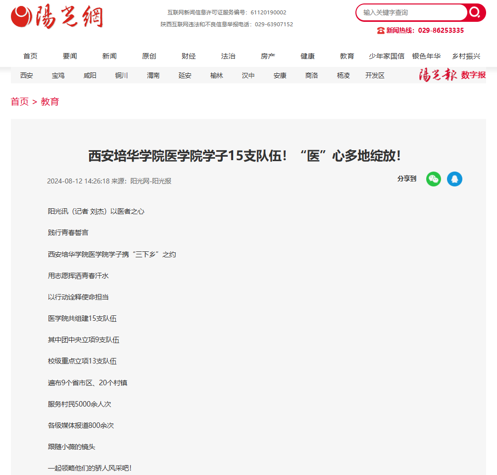 西安培华学院医学院学子携“三下乡”之约