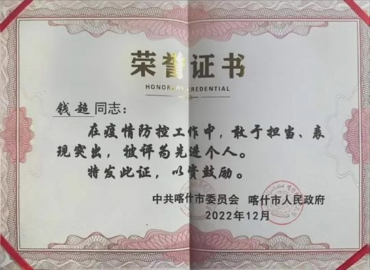 现在,钱超在喀什市发展和改革委员会任职。这一路走来,钱超与喀什融为一体,把喀什当成自己的家乡,把自己的小家安到这里,习惯气候,爱上美食,再也舍不得离开……