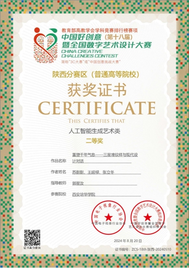 近日,第18届中国好创意暨全国数字艺术设计大赛评审结果公布。西安培华学院传媒与设计学院师生团队成绩喜人,共计获得奖项15项,其中国赛二等奖2项,国赛三等奖2项,省赛一等奖1项,省赛二等奖4项,省赛三等奖6项。