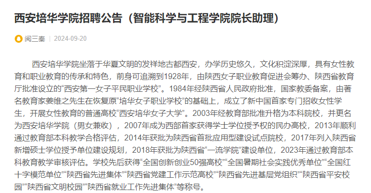 现面向校内外招聘智能科学与工程学院院长助理1人。