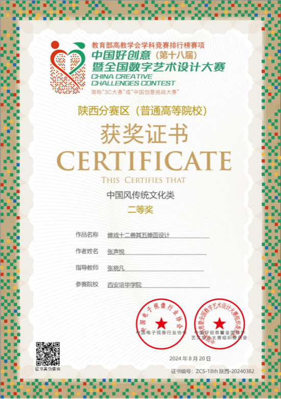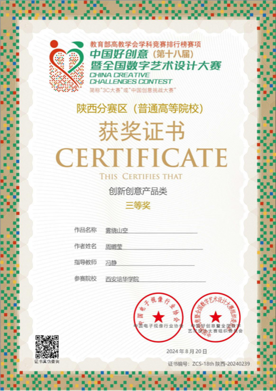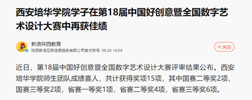 近日,第18届中国好创意暨全国数字艺术设计大赛评审结果公布。西安培华学院师生团队成绩喜人,共计获得奖项15项,其中国赛二等奖2项,国赛三等奖2项,省赛一等奖1项,省赛二等奖4项,省赛三等奖6项。