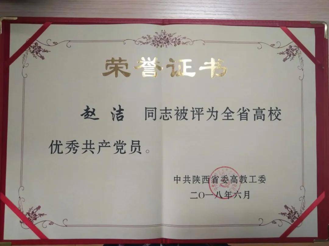 陕西省优秀共产党员、校级优秀教师、校级巾帼标兵、校级师德标兵、校级课程思政教学名师、院级优秀共产党员、院级“先进个人”......几乎每一年赵洁都会获得荣誉,她觉得这是认可,但更多的是激励。