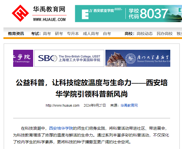 为了践行“弘扬科学家精神,激发全社会创新活力”的使命,西安培华学院积极参与并组织了一系列群众性科普活动。