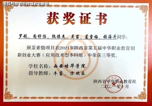 指导学生申报省级大创项目2项,获第七届中国国际“互联网+”大学生创新创业大赛获陕西赛区省级铜奖、第五届陕西省中华职业教育创新创业大赛获三等奖、第十一届“挑战杯”陕西省大学生创业计划银奖。