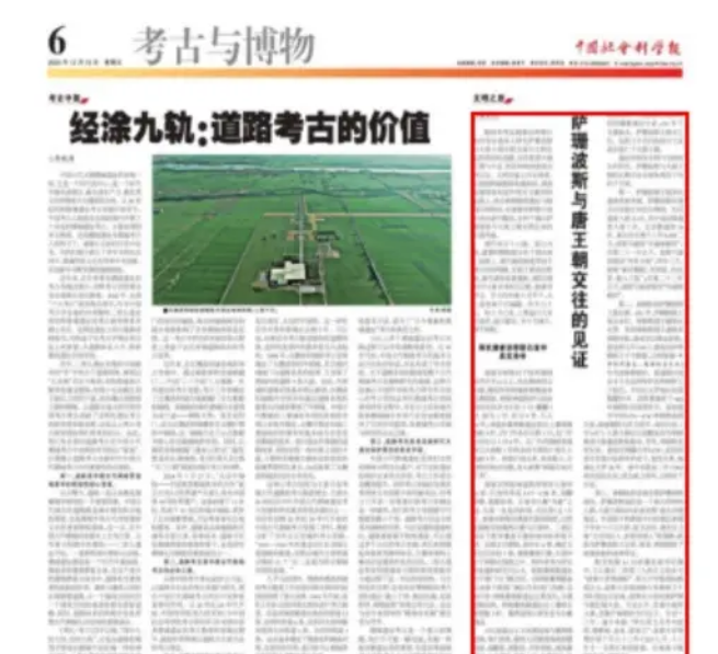 12月13日,学校科研管理中心副主任朱利民的历史考古理论文章《萨珊波斯与唐王朝交往的见证》在《中国社会科学报》第3035期A06版“考古与博物”专版通栏发表(文章系国家社科基金项目“唐代胡人都市生活研究”21XKG004阶段性成果)。这是培华历史考古成果首次在该权威学术报刊亮相。