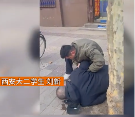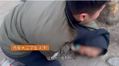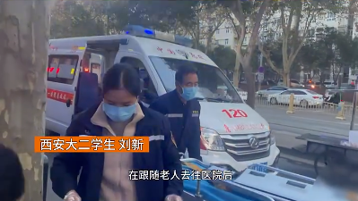 西安培华学院学生 刘新:“看见一位老人摔倒在地,并且旁边没有人,于是我俯身上前查看情况,发现老人已经意识模糊。”